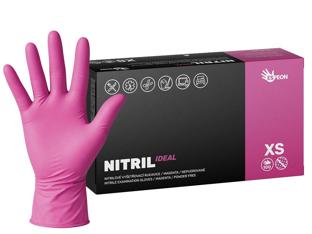 Nitrilové rukavice NITRIL IDEAL 100 ks, nepudrované, magenta, 3.5 g