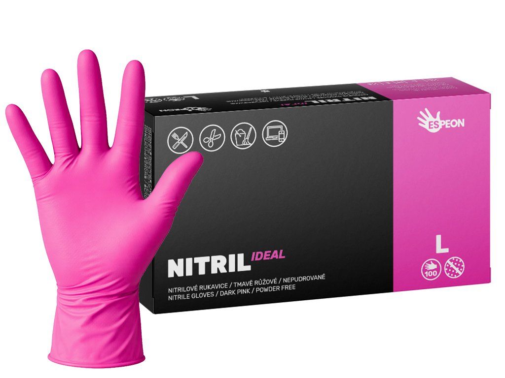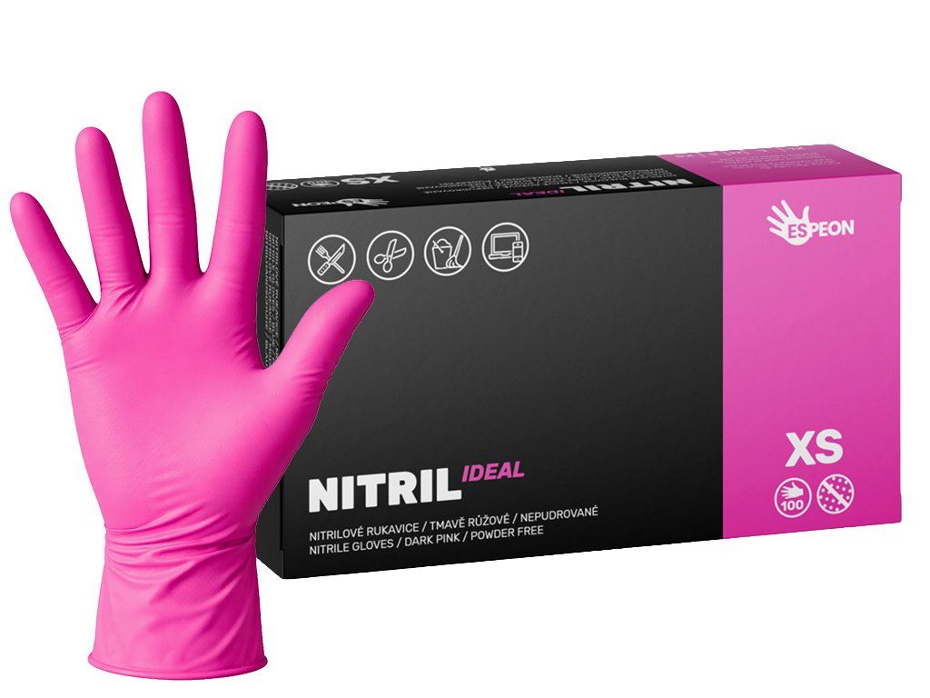 Nitrilové rukavice NITRIL IDEAL 100 ks, nepudrované, tmavo ružové, 3.5 g