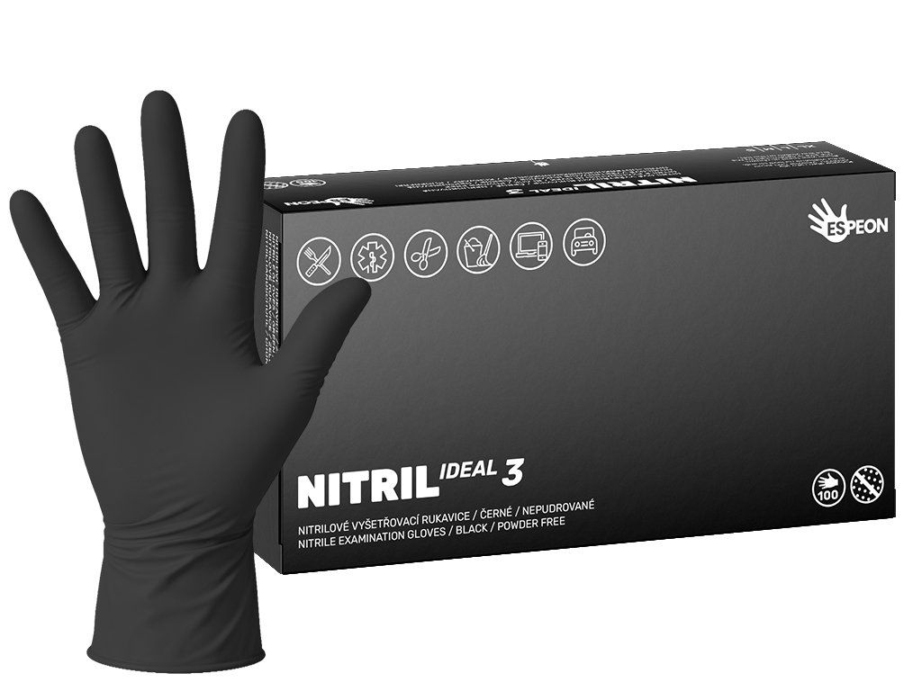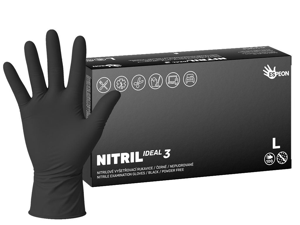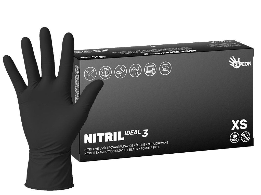Nitrilové rukavice NITRIL IDEAL3 100 ks, nepudrované, čierne, 3.5 g