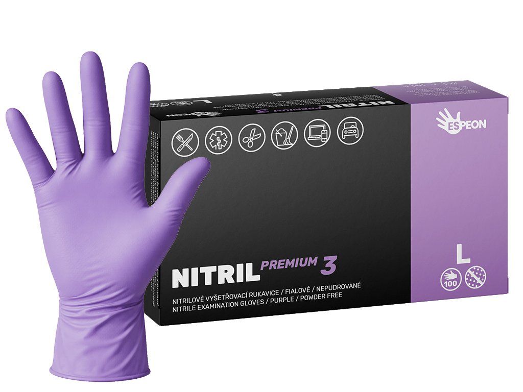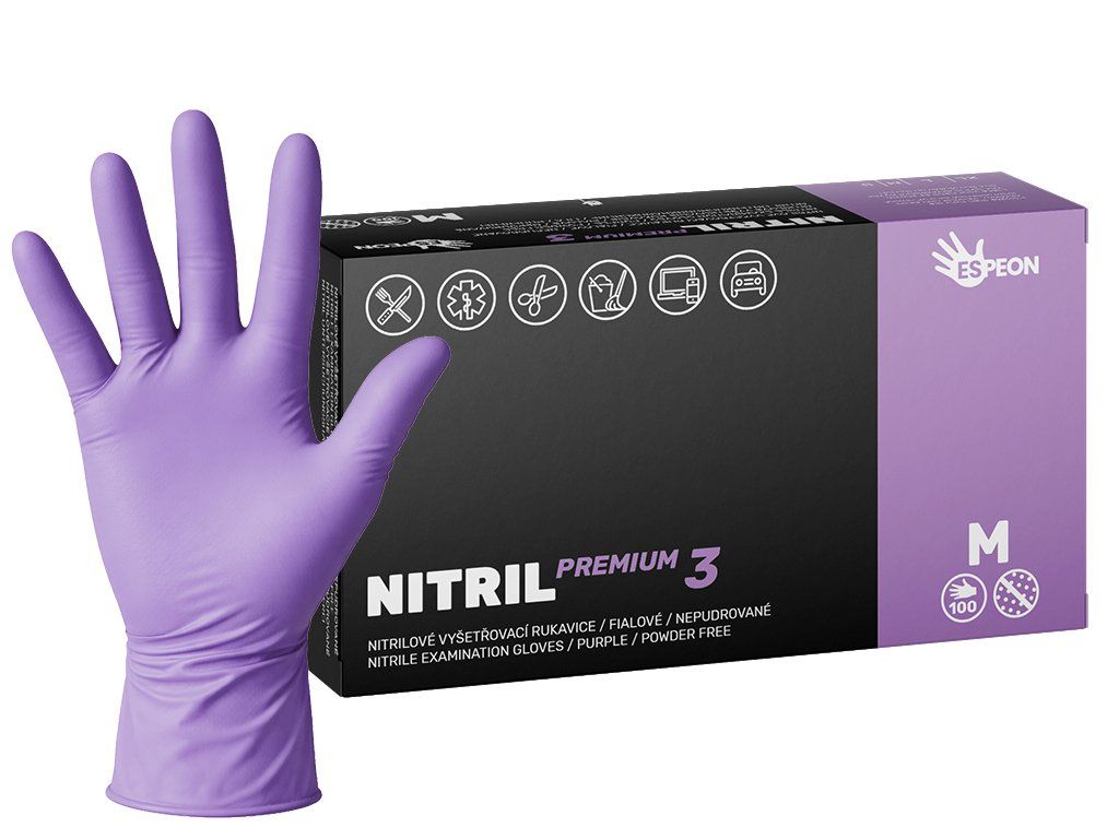 Nitrilové rukavice NITRIL PREMIUM3 100 ks, nepudrované, fialové, 4.0 g