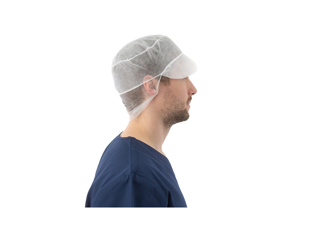 Čiapka so šiltom z netkanej textílie, 53 cm, 100 ks, biela